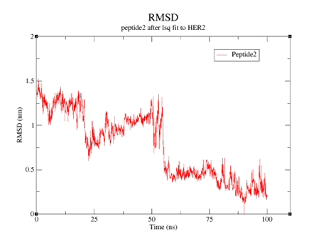 So after my MD simulation like many other in the forum I have also encountered some pbc erros. But thanks to many users and developers I have been able to solve some of my problems. However I have tried many methods but couldnt fix a pbc effect (İn my opinion) after doing my RMSD calculation. In my MD videos I dont see any jump or difussion of the peptide however in my graph I see a sudden spike drop around 90 ns. I have used the fallowing codes: